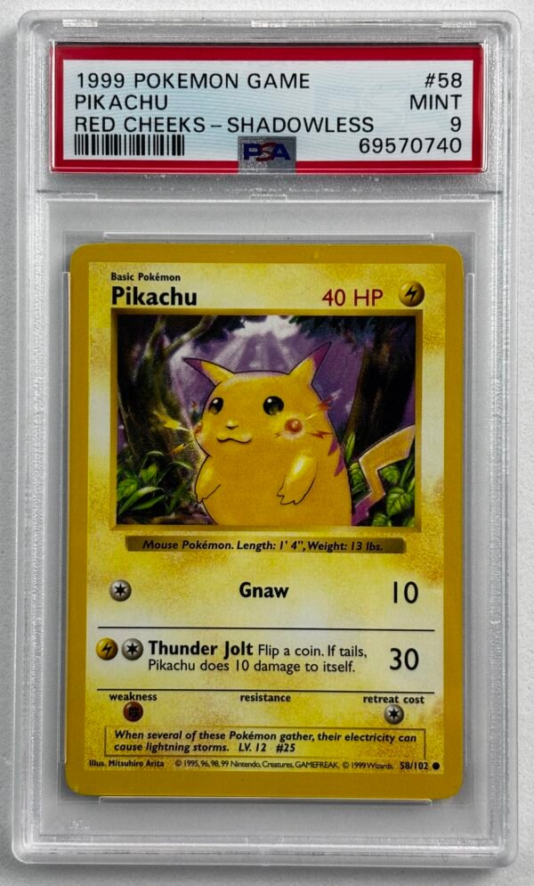 1999 POKEMON BASE SET SHADOWLESS RED CHEEKS-#58 PIKACHU PSA 9