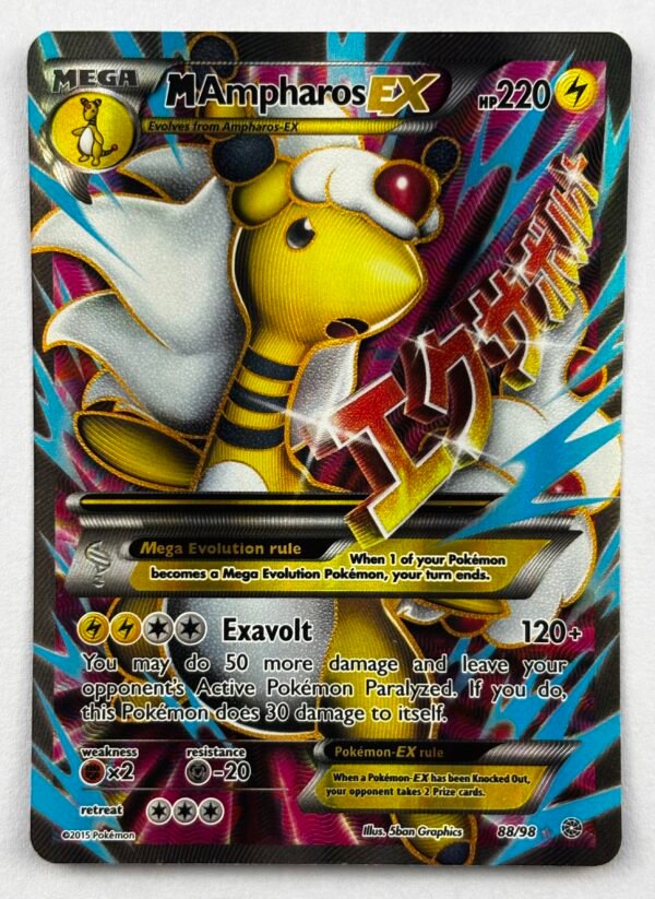 Estado general: M Ampharos EX (Full Art #88/98) – XY: Ancient Origins (Inglés) en buen estado general, con ligeros signos de manejo visibles.